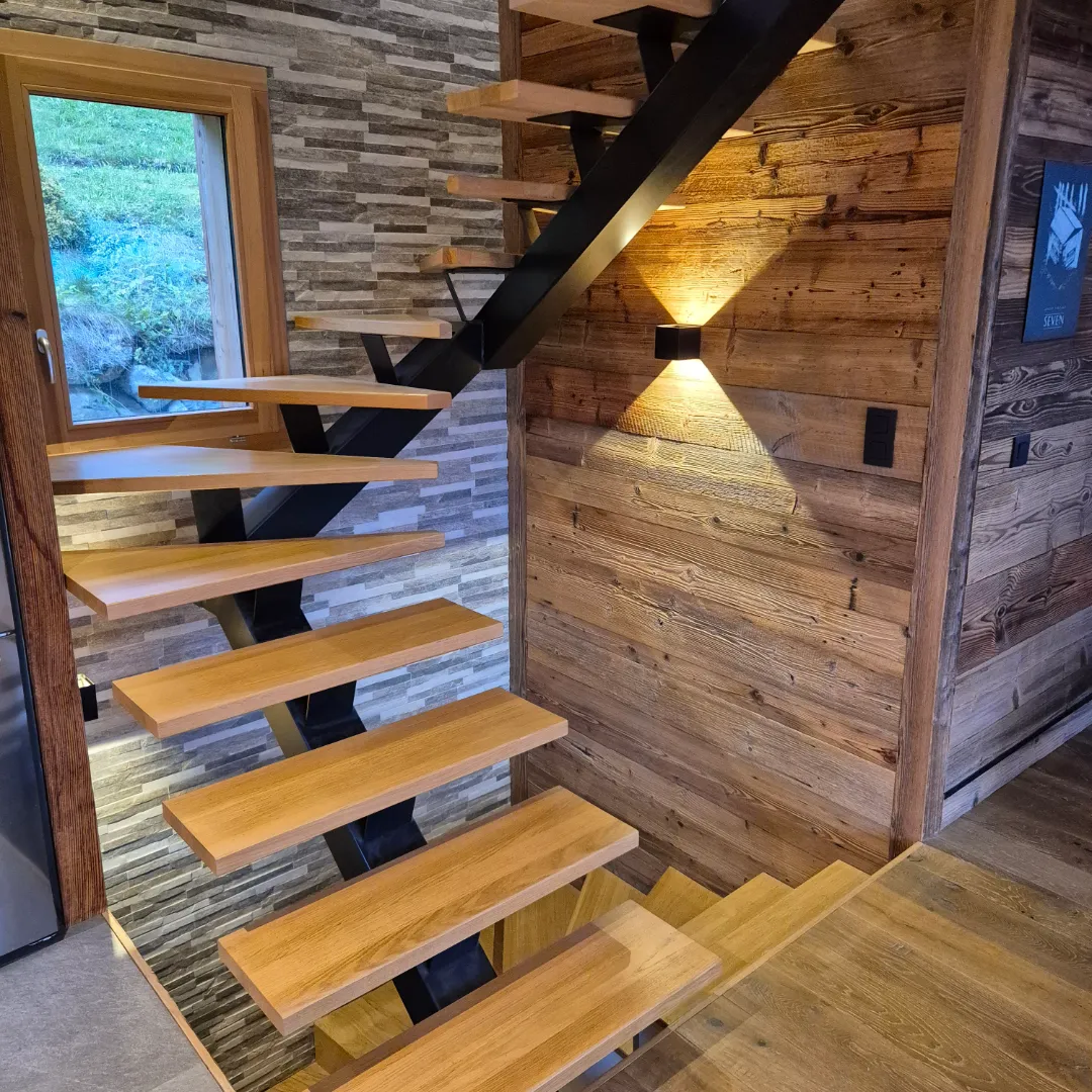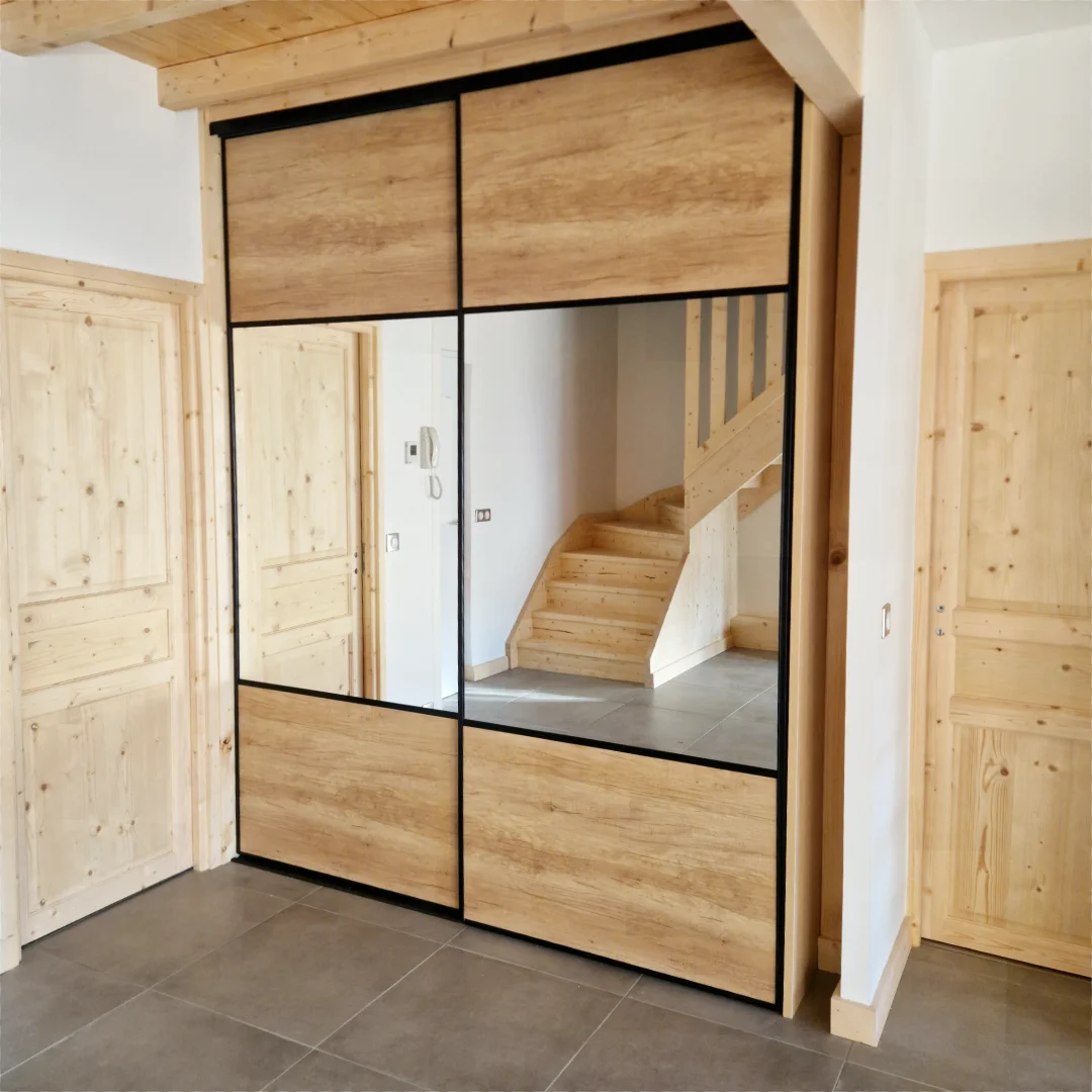 Nous réalisons des menuiseries intérieures et extérieures sur mesure : portes, fenêtres, escaliers, bardages et autres éléments conçus pour s’adapter parfaitement à votre habitat, alliant esthétisme et qualité.